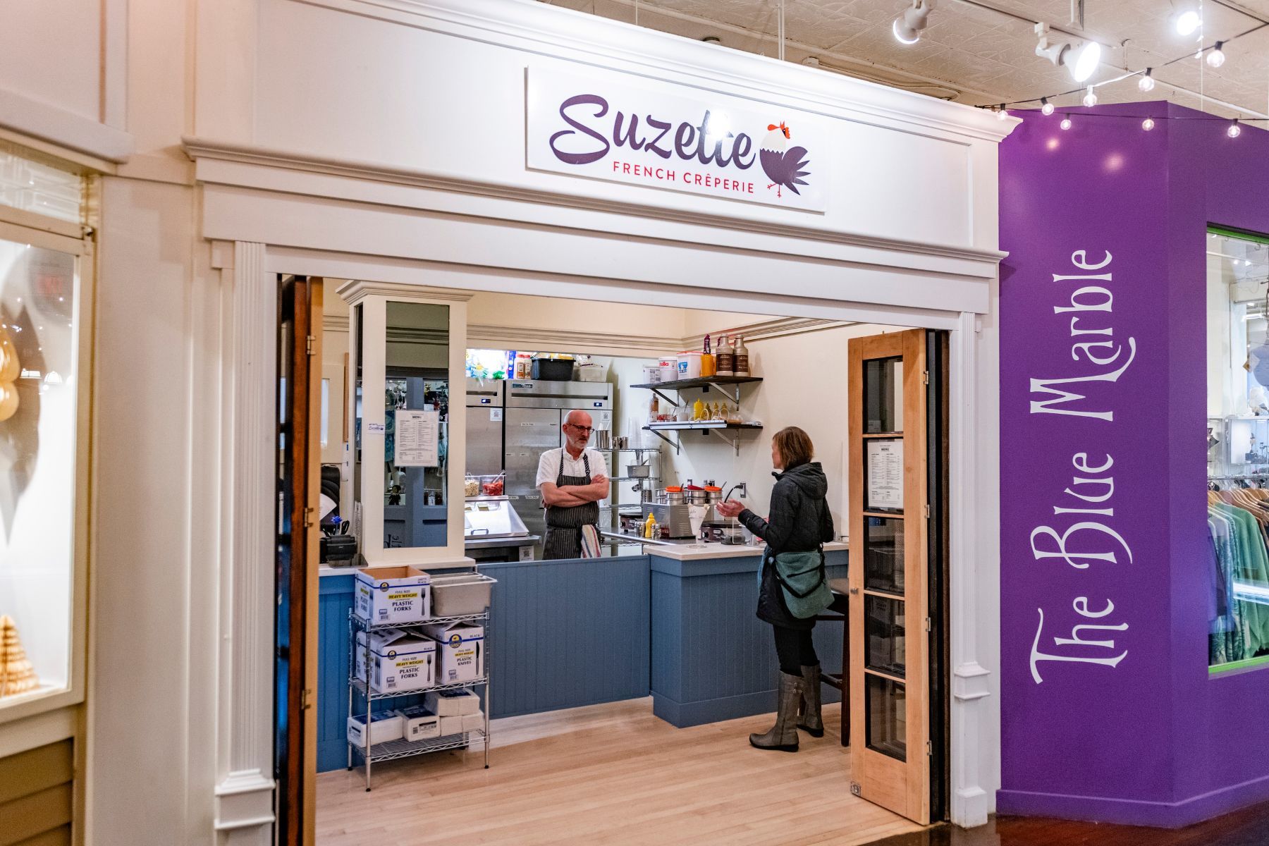 Offering crêpes, fresh baked macarons and prepared, pre-packaged French cuisine.